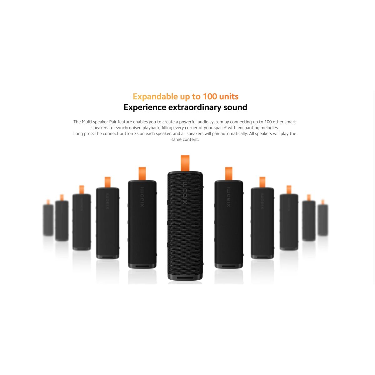 Xiaomi QBH4261GL. Potencia estimada RMS: 30 W, Rango de frecuencia: 60 – 20000 Hz, Relación señal/ruido (SNR): -80 dB. Tecnología de conectividad: Inalámbrico y alámbrico, alcance Bluetooth: 25 m. Tipo de producto: Altavoz portátil estéreo, Color del producto: Negro, Control de volumen: Botones. Tipo de batería: Batería integrada, Tecnología de batería: Ión de litio, Capacidad de batería: 2600 mAh. Peso: 597 g, Ancho: 196,6 mm, Profundidad: 68 mm