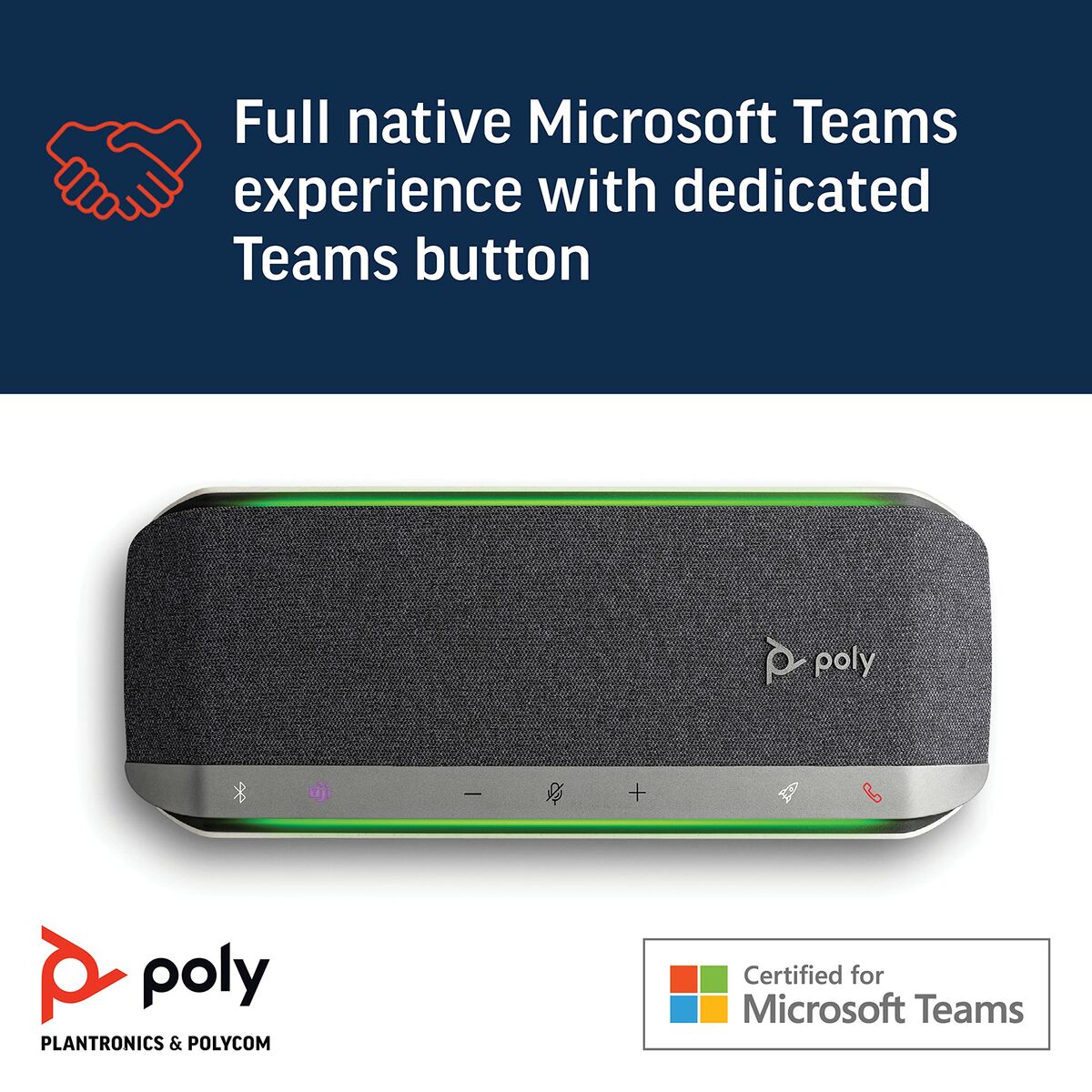 Los negocios se mueven a gran velocidad. Sumarse a una reunión virtual debería ser igual de rápido. Con el altavoz manos libre inteligente Poly Sync 40 USB/Bluetooth®, podrá ponerse a trabajar de inmediato. Poly Sync 40 se ha diseñado para su espacio de trabajo flexible con una portabilidad y un sonido increíbles. Para escuchar y ser escuchado, gracias a la matriz de múltiples micrófonos y el audio dúplex completo. Las características intuitivas favorecen unas teleconferencias claras y sencillas. Flexible, sencillo, inteligente.