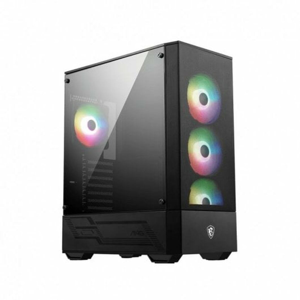 MSI MAG Forge 112R. Factor de forma: Midi Tower, Tipo: PC, Color del producto: Negro, Transparente. Ubicación de fuente de alimentación: Fondo. Ventiladores frontales instalados: 3x 120 mm, Diámetro de ventiladores frontales soportados: 120,140 mm, Ventiladores traseros instalados: 1x 120 mm. Tamaños de disco duro soportados: 2.5,3.5″. Ancho: 214 mm, Profundidad: 409 mm, Altura: 485 mm
