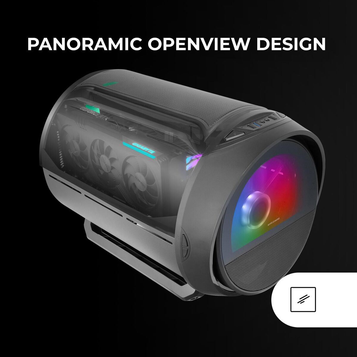 Panel frontal de cristal templado y ventana superior curvada panorámica que muestran el interior de tu equipo. Este diseño no solo realza la estética ARGB de tus componentes, también facilita el acceso, el montaje y la gestión del sistema. La MC-CYLON convierte tu configuración en un escaparate premium.