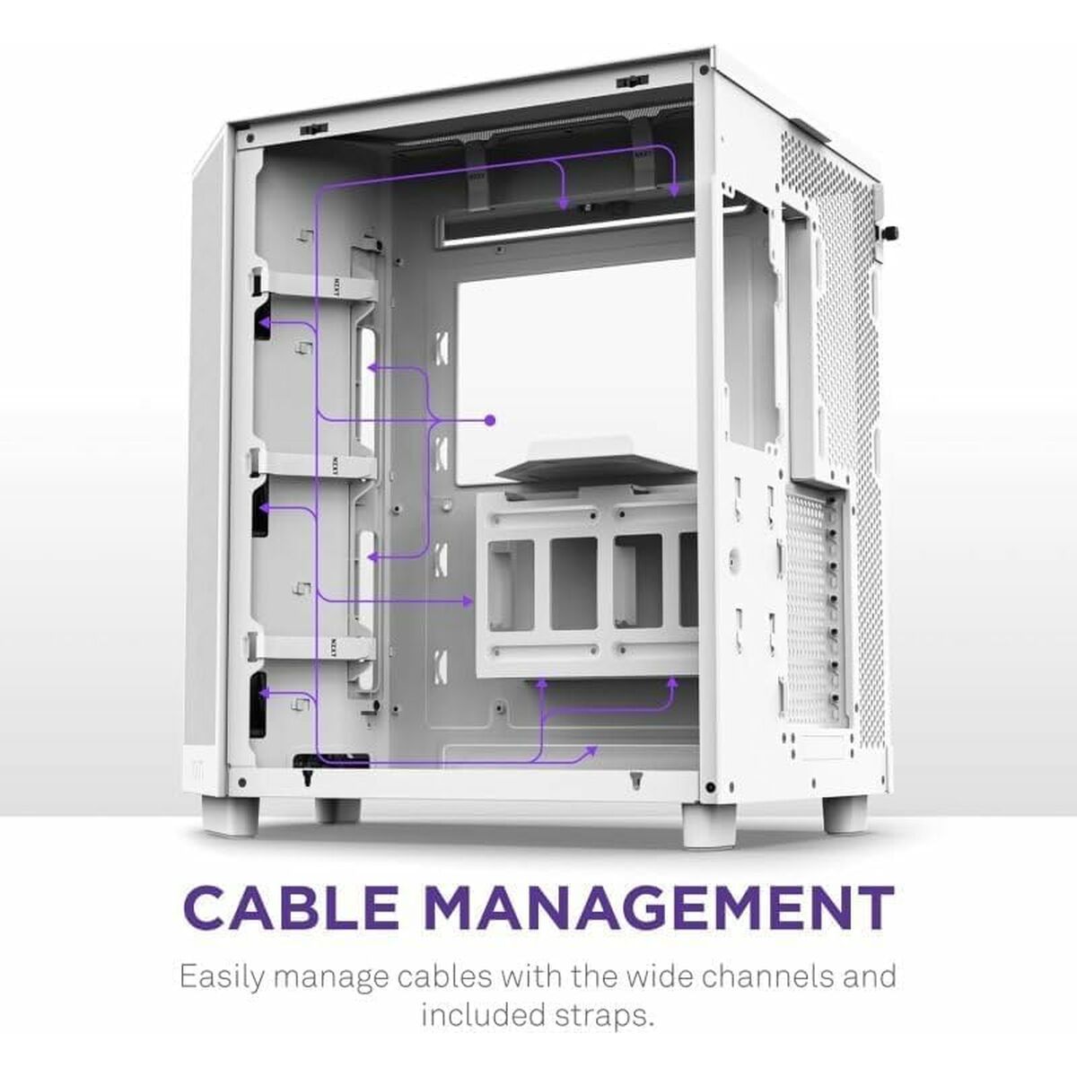 NZXT H6 Flow. Factor de forma: Midi Tower, Tipo: PC, Color del producto: Blanco. Ventiladores frontales instalados: 3x 120 mm, Diámetro de ventiladores frontales soportados: 120 mm, Diámetro de ventiladores traseros soportados: 120 mm. Tamaños de disco duro soportados: 2.5,3.5″. Ancho: 287 mm, Profundidad: 415 mm, Altura: 435 mm. Ancho del paquete: 508 mm, Profundidad del paquete: 361 mm, Altura del paquete: 515 mm