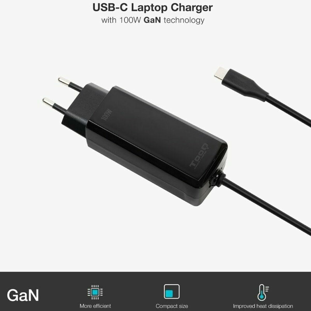 ¡Si buscas novedades de tendencia en el mercado, te presentamos Cargador para Portátil TooQ GAN USB-C PD 100W Cúbico 100 W!El cargador para portátil TooQ GAN USB-C PD 100W es un dispositivo avanzado que incorpora la innovadora tecnología de Nitruro de Galio (GaN), la cual permite una eficiencia energética superior al reducir la generación de calor durante la carga, asegurando un funcionamiento más estable y seguro para sus equipos. Su diseño cúbico y compacto en color negro facilita la portabilidad y el ahorro de espacio, ideal para profesionales y usuarios que requieren carga rápida y eficiente tanto en el hogar como fuera de él. Gracias a su salida de hasta 100W bajo el protocolo Power Delivery (PD) por USB-C, es compatible con una amplia gama de portátiles modernos, tablets y smartphones que admiten carga rápida, proporcionando energía suficiente para dispositivos de alta demanda sin comprometer la velocidad de carga. Además, el uso de tecnología GaN posibilita un tamaño reducido respecto a cargadores tradicionales, sin sacrificar potencia ni seguridad. Este cargador está fabricado pensando en la durabilidad y el confort térmico, permitiendo una transferencia de energía óptima minimizando el riesgo de sobrecalentamiento, lo que contribuye a prolongar la vida útil del equipo conectado. El modelo TooQ GAN USB-C PD 100W se posiciona como una solución funcional y tecnológica para usuarios que valoran la eficacia, seguridad y movilidad en sus accesorios de carga, adaptándose a las necesidades actuales de dispositivos con altos requerimientos energéticos.