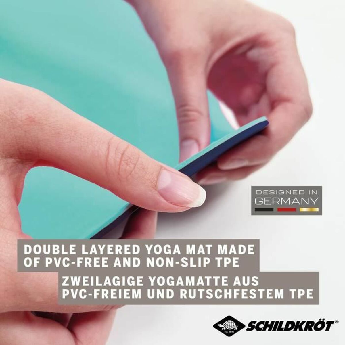 ¡Mantente en forma y descubre las últimas novedades del sector para realizar deporte con las mejores garantías! Compra Esterilla Schildkröt al mejor precio y ¡disfruta de una vida saludable!La esterilla de fitness Schildkröt es un producto diseñado para ofrecer comodidad y funcionalidad durante la práctica de yoga u otros ejercicios de suelo. Fabricada con material PVC, esta esterilla presenta unas dimensiones de 180 x 60 cm, que proporcionan un espacio adecuado para realizar estiramientos, posturas y entrenamiento con libertad de movimiento. A pesar de la mención “sin PVC” en la descripción, el material principal indicado es PVC, conocido por su resistencia y capacidad para absorber impactos y evitar deslizamientos, lo cual es fundamental para mantener la estabilidad en actividades físicas que requieren balance y seguridad. Su textura antideslizante contribuye a evitar movimientos indeseados, permitiendo un uso seguro incluso en superficies lisas. El diseño bicolor en tonos azul marino y menta añade un aspecto visual moderno y atractivo, que combina funcionalidad con estética. La esterilla resulta una solución polivalente para usuarios que buscan un producto práctico, ligero y resistente, ideal para el uso tanto en interiores como en espacios al aire libre. En resumen, esta esterilla Schildkröt combina dimensiones adecuadas, material pensado para ofrecer durabilidad y una superficie que favorece la seguridad, constituyendo un accesorio esencial para quienes practican yoga o ejercicios similares con regularidad.