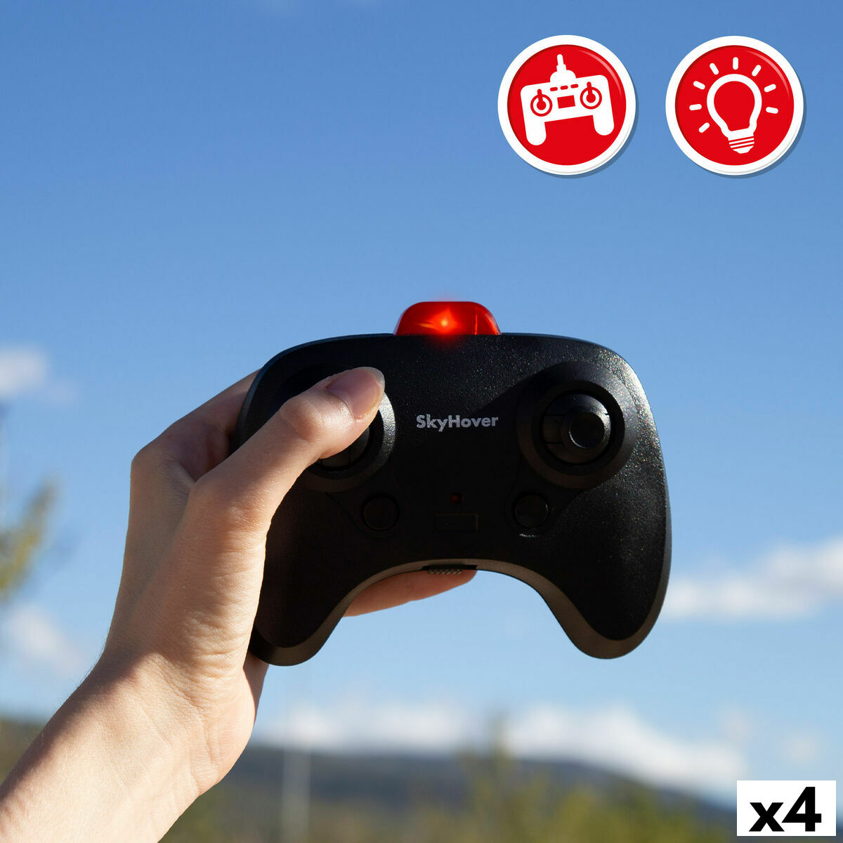 - Vuelos estables y giros 360º: el mando de control remoto que opera en frecuencia 2.4 GH-z permite realizar acrobacias 360º y maniobras precisas y estables