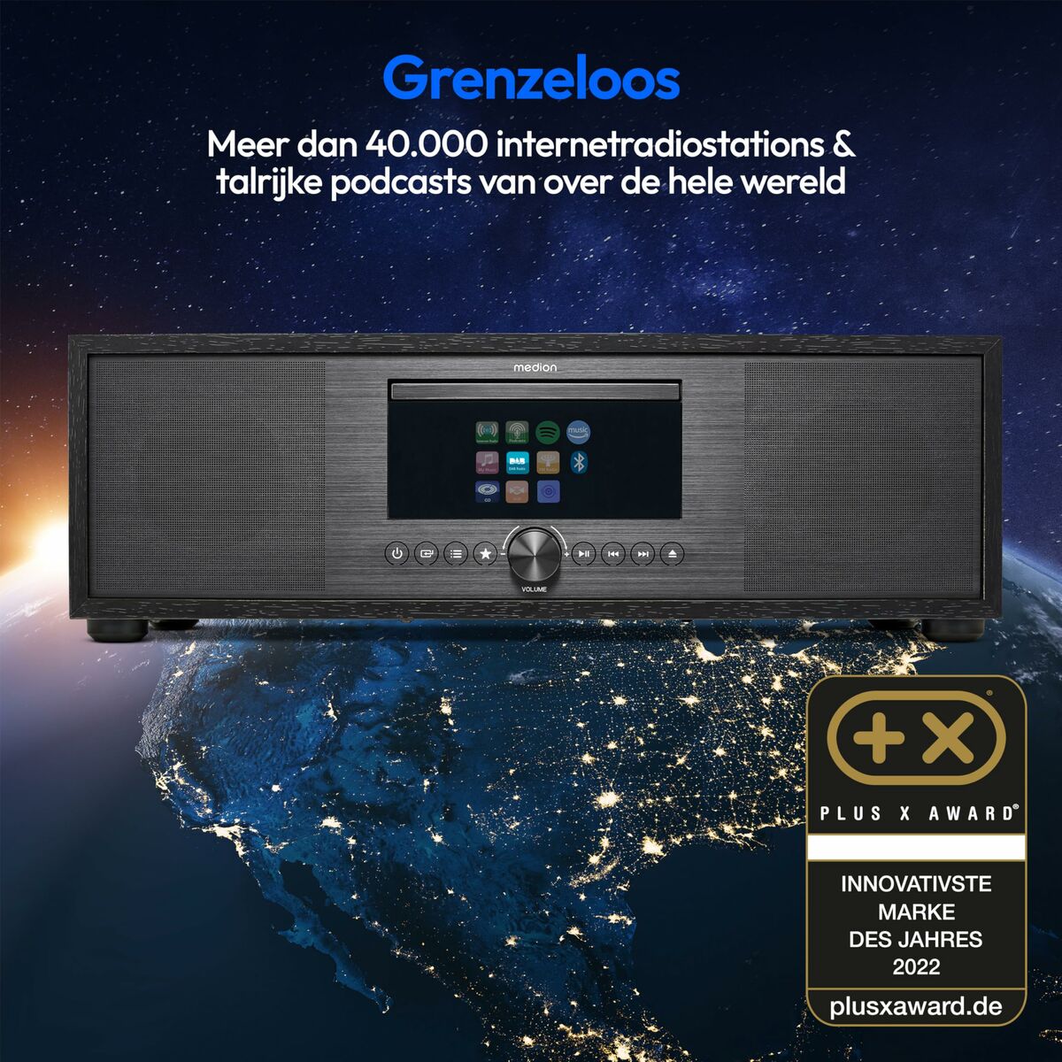 MEDION LIFE P66400. Tipo de radio: Internet, Tipo de sintonizador: Analógico y digital, Bandas de radio soportadas: AM, DAB+, FM. Potencia estimada RMS: 80 W. Tipo de visualizador: LCD, Diagonal de la pantalla: 18 cm (7.1″). Color del producto: Antracita, Servicios de radio por internet soportados: Amazon Music, Spotify, Control de volumen: Giratorio. Fuente de energía: Corriente alterna