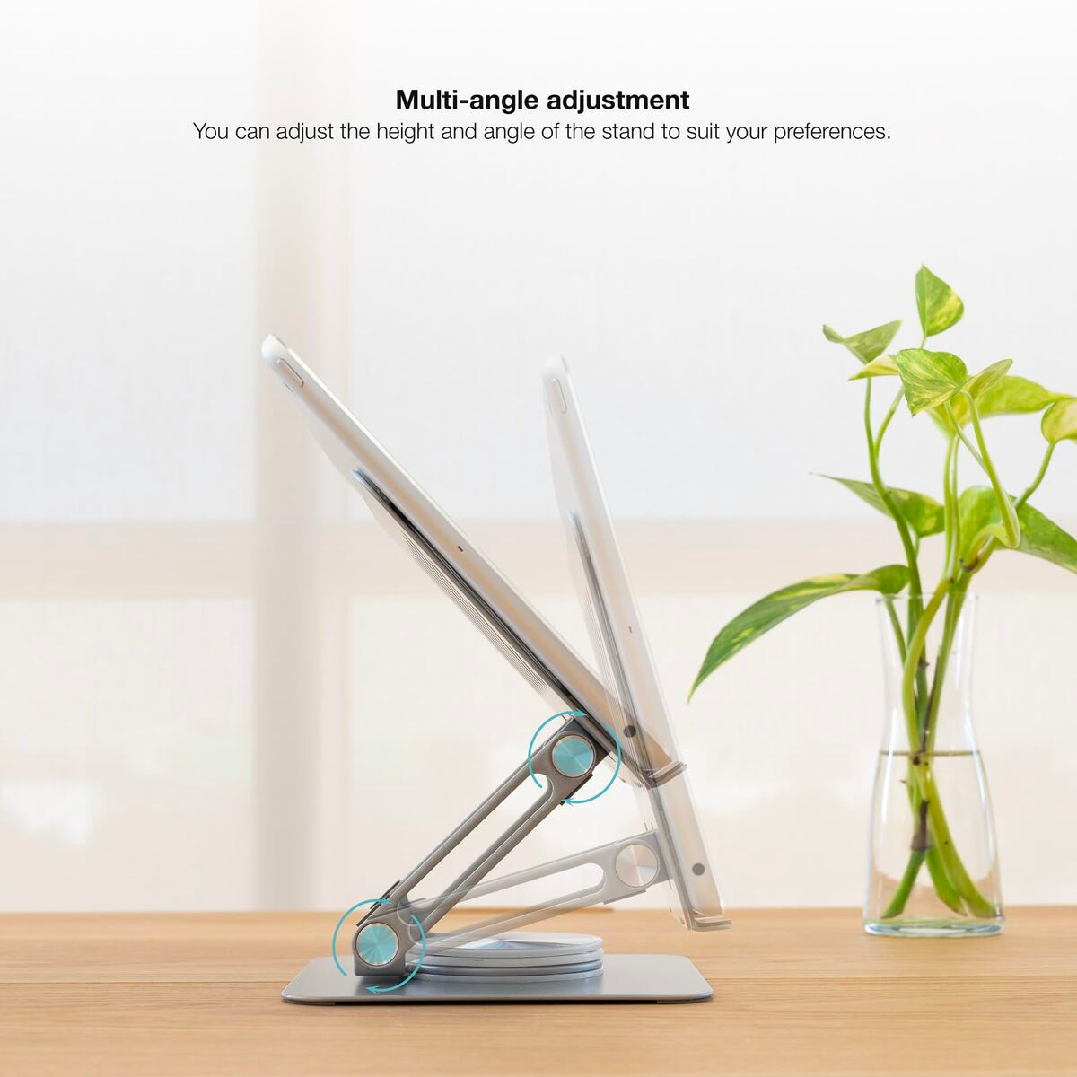 TooQ Soporte de Sobremesa con rotación 360° y ajustable para dispositivos de hasta 13”, Color Plata. Tipo: Soporte para tableta, Marca compatible: Universal, Compatibilidad: Max 13″. Ancho: 166,3 mm, Profundidad: 137,8 mm, Altura: 34,4 mm