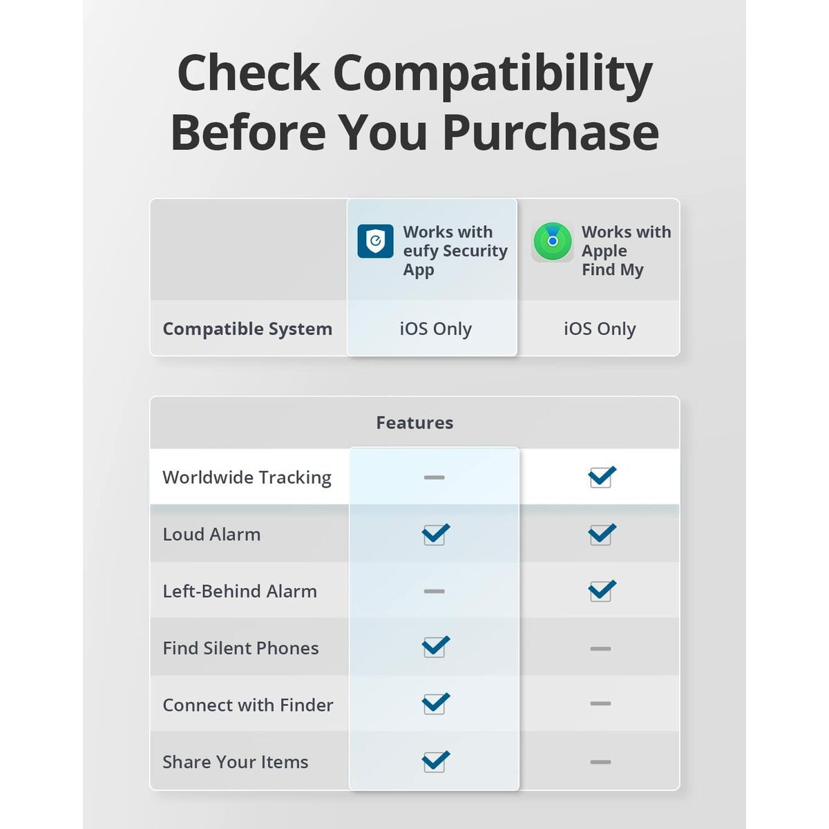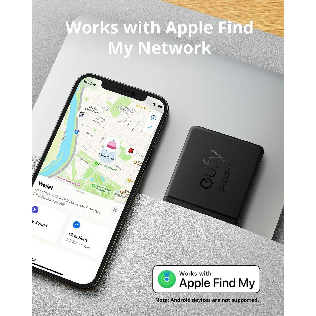 Eufy SmartTrack Card. Utilizar con: Universal, Tipo de producto: Rastreador de GPS, Color del producto: Negro. Autonomía: 26280 h. Sistemas operativos móviles soportados: iOS. Cantidad por paquete: 1 pieza(s)