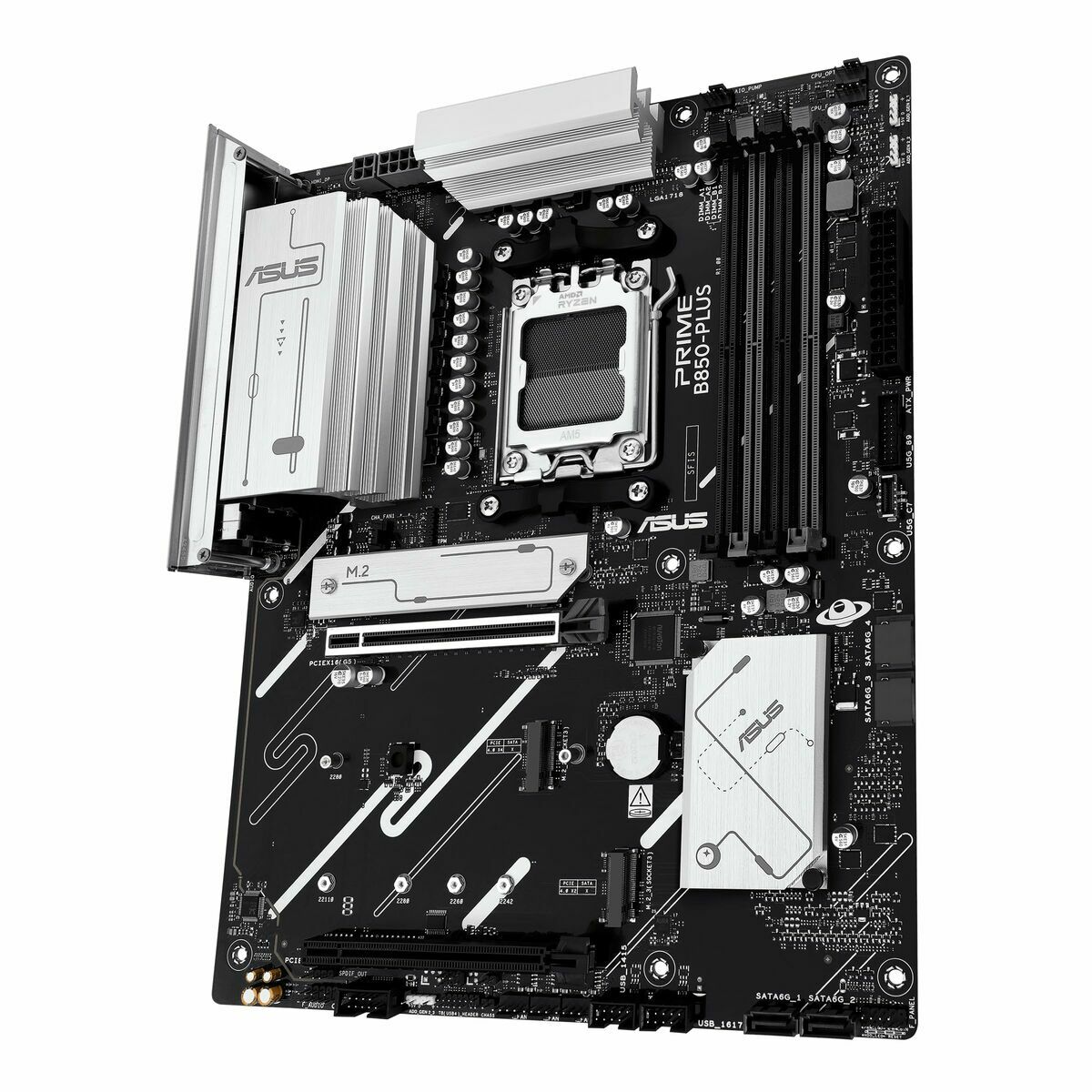 ASUS PRIME B850-PLUS-CSM. Fabricante de procesador: AMD, Socket de procesador: Zócalo AM5, Procesador compatible: AMD Ryzen 7000 Series, AMD Ryzen 8000 Series, AMD Ryzen 9000 Series. tipos de memoria compatibles: DDR5-SDRAM, Memoria interna máxima: 256 GB, Tipo de ranuras de memoria: DIMM. Interfaces de disco de almacenamiento soportados: M.2, SATA III, Tipos de unidades de almacenamiento admitidas: HDD & SSD, Niveles RAID: 0, 1, 5, 10. Conector USB: USB tipo A, USB Tipo C. Tipo de interfaz ethernet: 2.5 Gigabit Ethernet