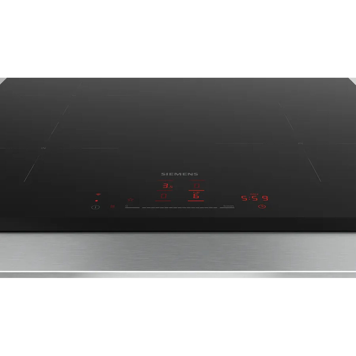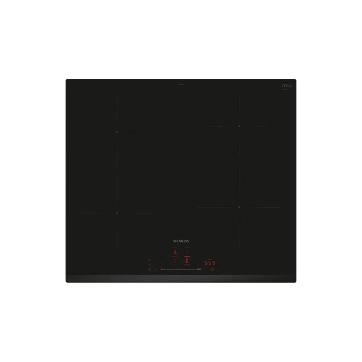 Siemens iQ100 EH631HEB1E. Color del producto: Negro, Tipo de instalación: Integrado, Anchura de los quemadores: 60 cm. Tipo de control: Tocar, Control de posición: Frente. Carga conectada (eléctrica): 7400 W, Voltaje de entrada AC: 220 – 240 V, Frecuencia de entrada AC: 50 – 60 Hz. Aplicaciones de control compatibles: Home Connect. Tecnologías Siemens (cocción): cookConnect