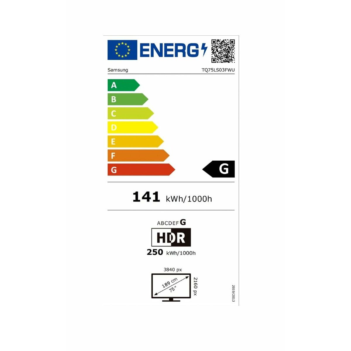 - Clase de eficiencia energética (HDR): G