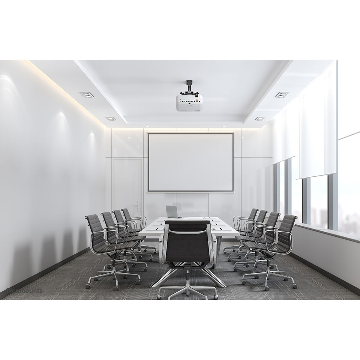 El Neomounts by Newstar CL25-530BL1 es un soporte de techo universal para proyectores. Debido a la gran capacidad de peso de hasta 45 kg y a las diversas opciones de ajuste, este soporte de techo para proyector es ampliamente aplicable. El CL25-530BL1 tiene cuatro brazos extensibles y la versátil tecnología de inclinación (+20°, -20°), rotación (360°) y giro (+8°, -8°), proporciona una colocación óptima de la proyección en cualquier lona, pantalla o pared. El Neomounts by Newstar CL25-530BL1 está equipado con un sistema de liberación fácil, que facilita mucho la instalación; la (des)instalación del proyector en el soporte del proyector puede realizarse en un instante y por una sola persona. Además, el poste redondo permite una fácil instalación en un falso techo. Por último, el poste del soporte para proyector Neomounts by Newstar puede inclinarse en el lado del techo, por lo que la instalación en un techo inclinado no supone ningún esfuerzo. La fijación del soporte en sí es robusta y firme, y por lo tanto libre de vibraciones. El sistema de gestión de cables del CL25-530BL1 garantiza que los cables queden perfectamente ocultos, ya que pasan por el poste del soporte de techo para proyectores.