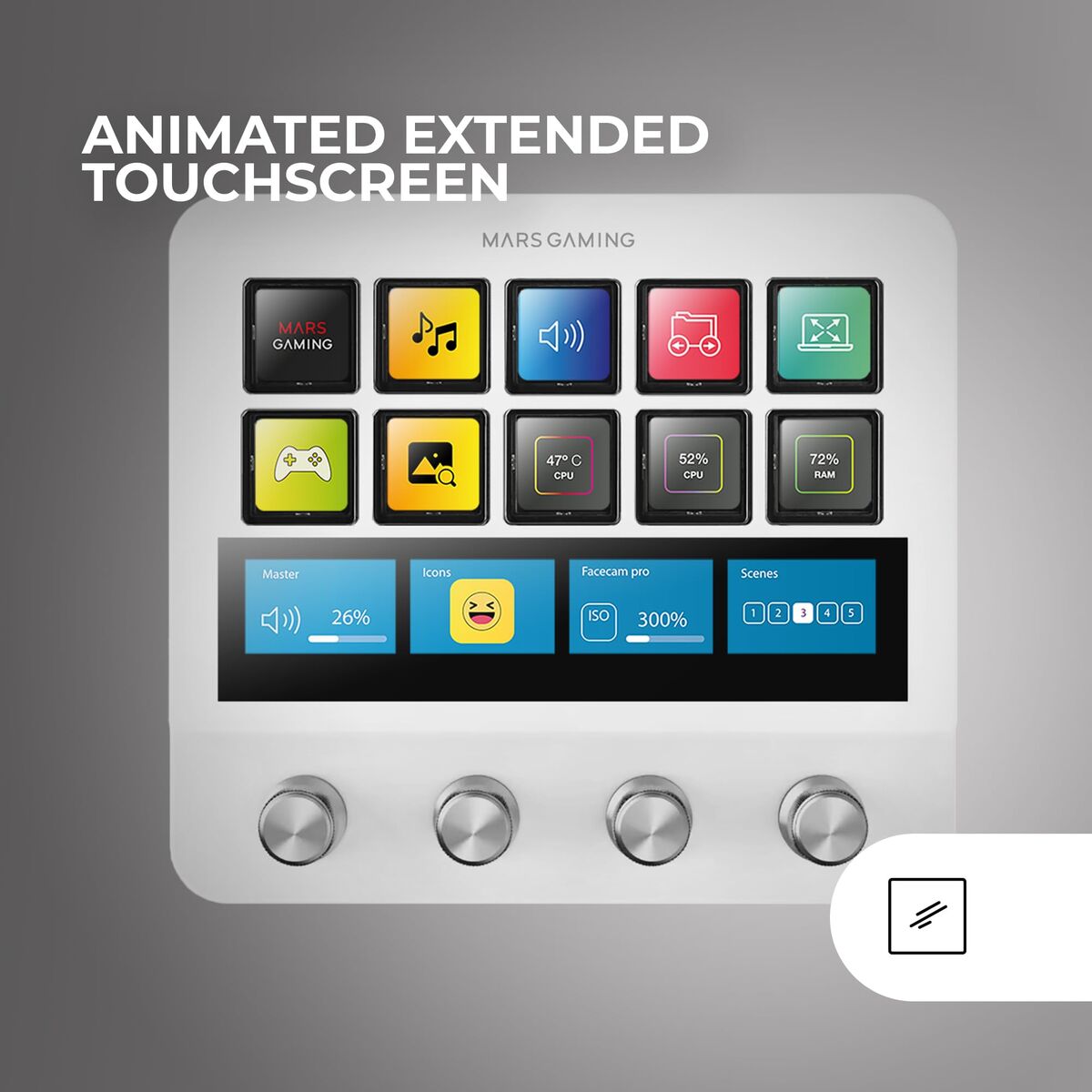 Accede a tu universo digital con un solo toque. Lanza aplicaciones, ejecuta scripts, controla escenas o dispara efectos de sonido. Con iconos estáticos o animados, localizarás cada función al instante, incluso en pleno directo.